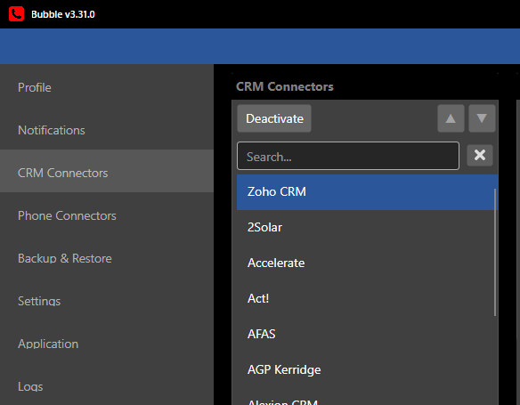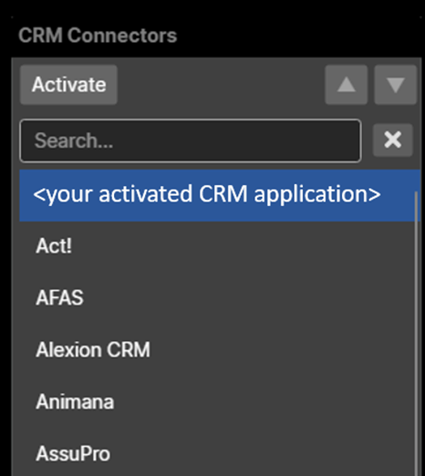 Go to CRM Connectors in the navigation bar on the left side, select the desired CRM integration by double-clicking on it. Or click the Activate button above